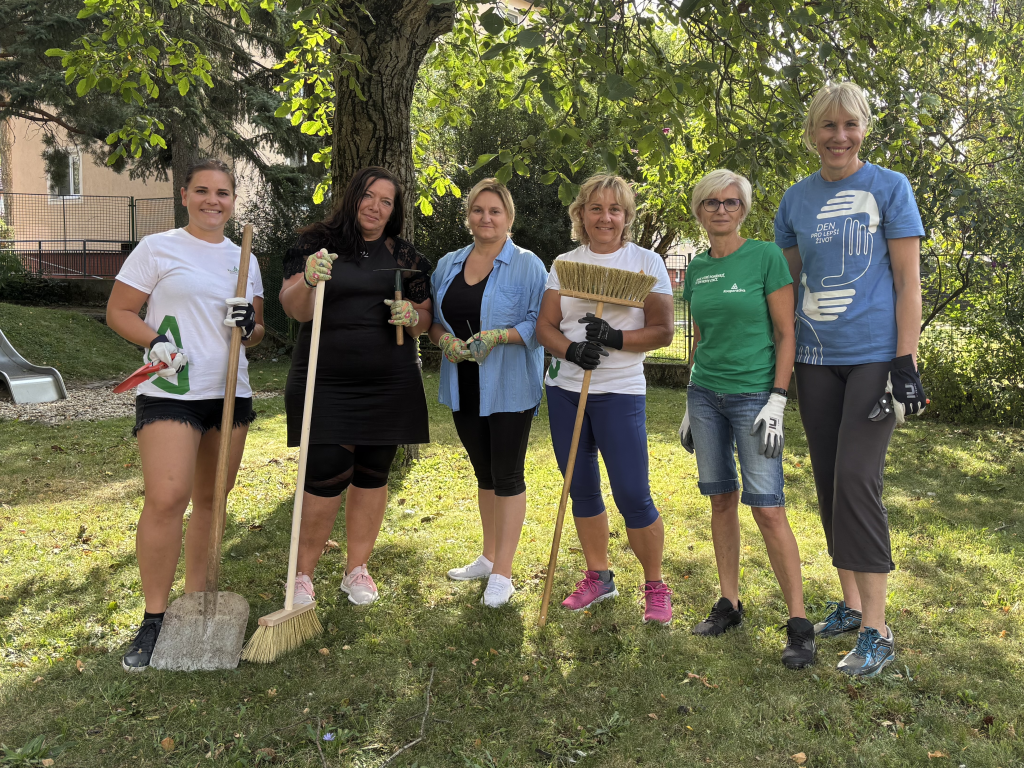 S radostí a vděčností bychom se s vámi rádi podělili o skvělý zážitek. Šest zaměstnankyň pojišťovny Kooperativa, a.s. v čele s regionální ředitelkou paní Karlou Smaženkovou dobrovolně a s nadšením věnovalo svůj čas úpravě zahrady naší mateřské školy. Díky jejich obětavé a nezištné práci při firemní akci Charity Day je nyní naše zahrada opět krásná, uklizená a hlavně bezpečná pro všechny naše děti.